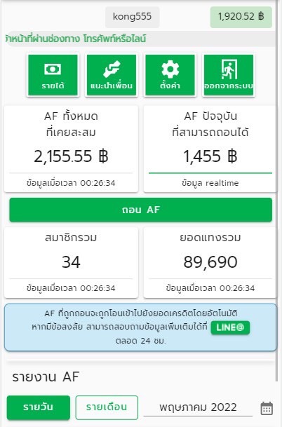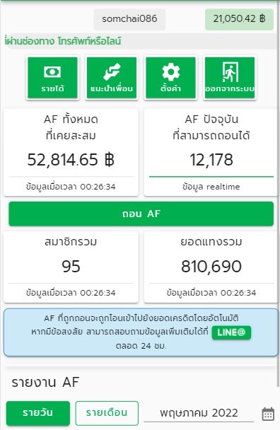ท่านสามารถดูยอดเติมเงินของลูกค้าได้ตลอดเวลา